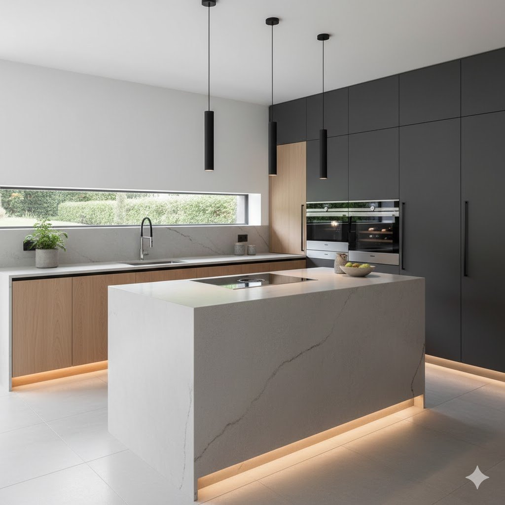 •שיש (משטח עבודה): עדיף לבחור חומר עמיד לחום, לשריטות ולכתמים – שיש קיסר איכותי, גרניט פורצלן או שיש טבעי בהתאם לתקציב.